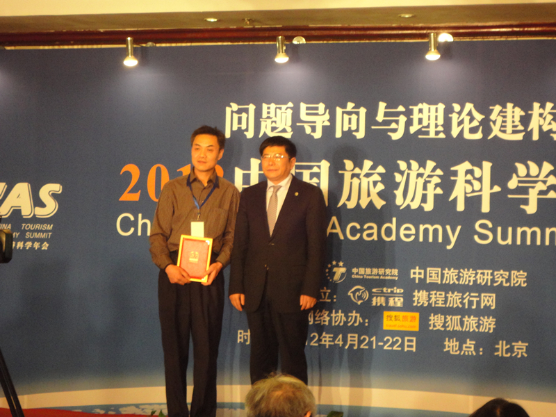 公司旅游专业教师王敬武副教授,在国家旅游局2012中国旅游科学年会上以《对旅游体验“硬核”学术地位的质疑》的学术论文荣获一等奖(也是唯一一位一等奖获得者),并以旅游体验为题做了大会主旨发言。王敬武副教授在主旨发言中,以现象学为视角,以严谨的科学态度和缜密的逻辑推理,从旅游科学整体结构的高度,对目前主宰旅游科学基础理论研究的旅游体验硬核理论提出颠覆性的质疑,赢得中国旅游研究院和与会专家学者的高度评价,成为本届旅游科学年会的一大学术亮点。