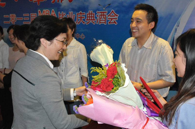 在庆典活动上,毕业生向母校赠送了纪念品,公司也向毕业生回赠了纪念品。校领导孙尧东、谢志华、张耘为2013届MBA、MPACC优秀毕业论文获奖者颁发了证书和奖品。