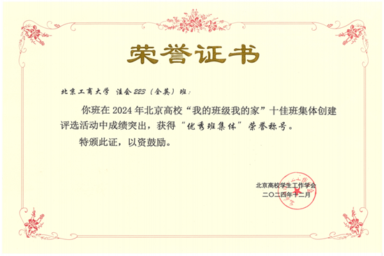 近日,2024年北京高校“我的班级我的家”十佳班集体评选展示交流活动顺利举办。经公司推荐、专家初评、现场展示等环节,公司2022级注会223(全英)班从北京地区58所高校推荐的288个班级中脱颖而出,荣获2024年北京高校“优秀班集体”荣誉称号。
