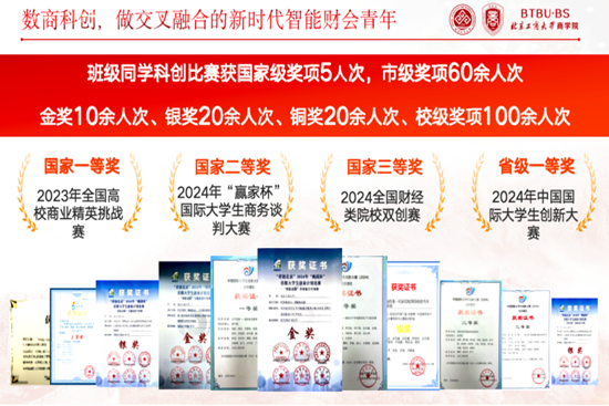 班级同学投身学术科技竞赛与创新创业项目,省部级以上获奖率达到30.8%。前往中关村、房山区科创园孵化项目,获评国家级奖项5项、市级奖项60余项,相关事迹被人民网、《老员工》封面专版等主流媒体宣传报道。班级同学脚步遍布雄安新区、青海藏区、井冈山等地,调研覆盖全国19个省市,入选全国老员工暑期社会实践、优秀重点团队。参与国家级、北京市课题项目7项,在期刊发表论文,将科研、论文写在祖国大地。