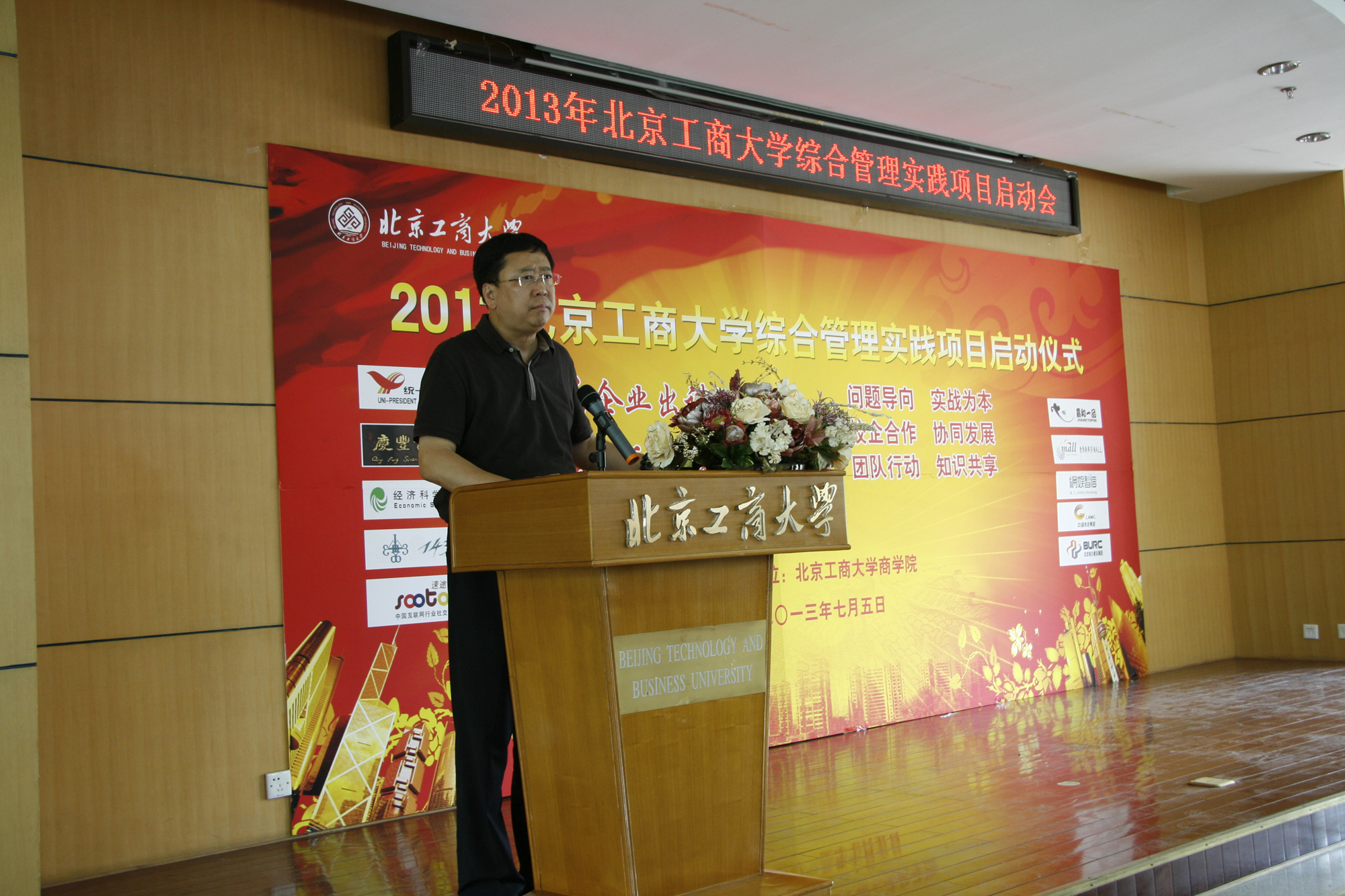 7月5日下午,第二届市场营销综合实践及MBA综合管理实践项目启动仪式在阜成路校区举行。金源新燕莎MALL、华天饮食庆丰包子铺、统一企业公司、网娱智信科技咨询(北京)有限公司、速途网、北京鄂尔多斯创展服装有限公司、经济科学出版社等企业的高层管理者及304永利集团副经理张翔教授、市场营销系教师、员工参加了此次活动。速途网等媒体参加了会议。启动仪式由市场营销系郭崇义副教授主持。
