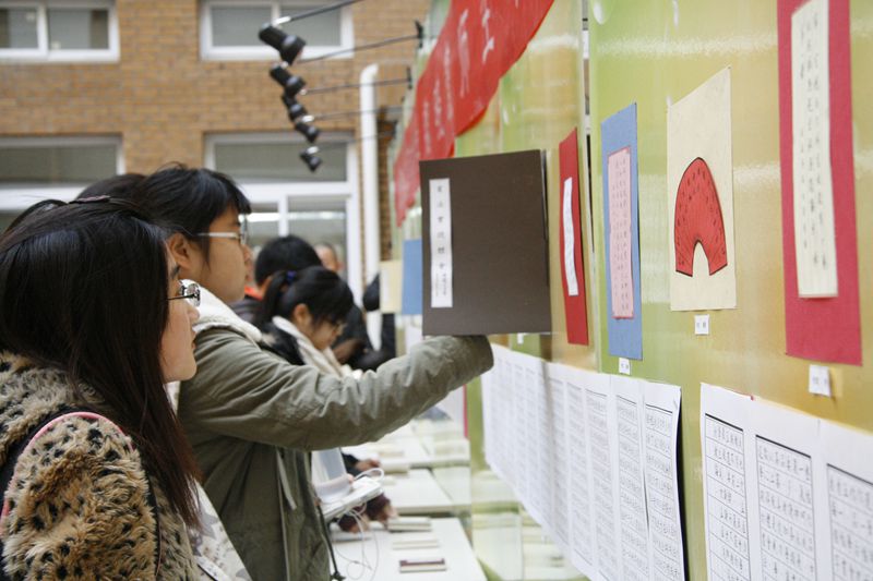 各位来宾共同为开幕式进行了剪彩。魏晓寰老师向图书馆赠送了自己的作品集等图书。同学们认真观看了魏晓寰员工的书法及篆刻作品,并和魏晓寰老师进行了交流。展览上还展出了部分魏晓寰老师书法及篆刻作品。展览近期将分别在阜成路校区和良乡校区图书馆举办。