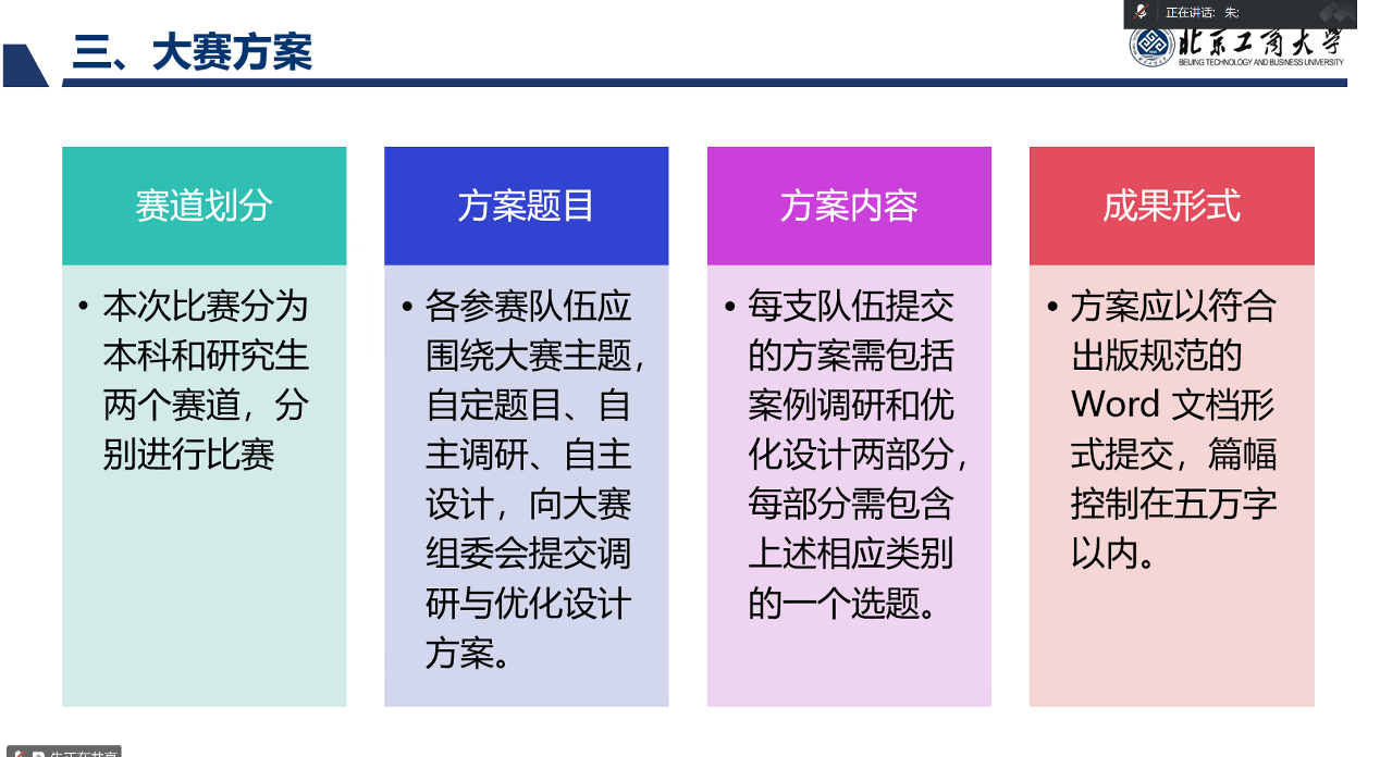 接下来,304永利集团物流管理专业负责人朱宇婷老师详细介绍了本届大赛的方案。她阐释了大赛主题的背景与意义,并介绍了粮油储备体系优化、应急物资中转站运营模式创新、农产品冷链网络优化等11个选题方向,明确其核心任务与数据要求。大赛分为初赛和决赛两个阶段,朱老师还说明了时间安排、评审流程及晋级机制,强调赛事旨在引导员工关注现实问题,提出创新且可行的优化方案。