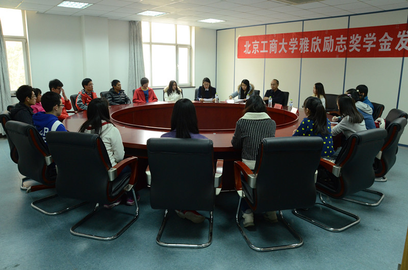 11月26日,公司雅欣励志奖学金发放仪式在良乡校区举行。出席仪式的有:北京梁氏聚鑫文化交流发展有限公司总经理梁雅欣女士、员工处资助中心主任徐红京、公司党总支副书记褚才宽和受助员工。仪式由员工处资助中心李娜主持。