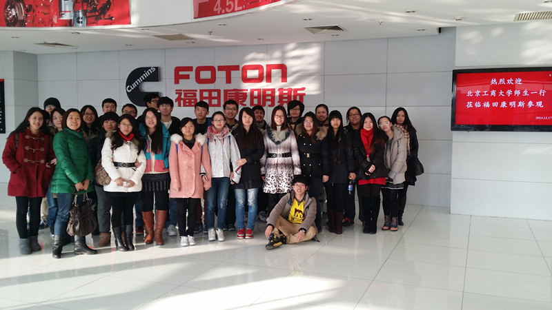活动的第一个环节是参观北汽福田总部的“生产精细化比武”的图片展览区,同学们感叹其生产管理的精细化,体会到企业的进步来自于每一个小细节的改进。紧接着参观了福田公司今年来研发的新产品——清洁能源公交车。此次参观的重点是福田康明斯发动机生产线,该生产线是全球领先的动力设备制造商——康明斯公司与中国最大的商用车制造商– 北汽福田汽车股份有限公司以50:50的比例合资组建的轻型柴油发动机生产企业。项目总投资额逾二十七亿人民币,年产能可达四十万台,是中国大型轻型柴油机发动机生产基地。福田康明斯投产的ISF系列2.8升和3.8升轻型直列四缸高压直喷式柴油发动机是康明斯投入巨资全新研发的两款面向未来的新一代全电控轻型柴油机,功率范围覆盖107-168马力。这两款发动机具有低排放、高功率的特点,适用于轻卡、中卡、轻客、皮卡、MPV多功能车、SUV等轻型车辆以及小型工程机械和小型发电机组等非公路设备,在中国“节能减排”的大环境下,具有非常广阔的市场前景。