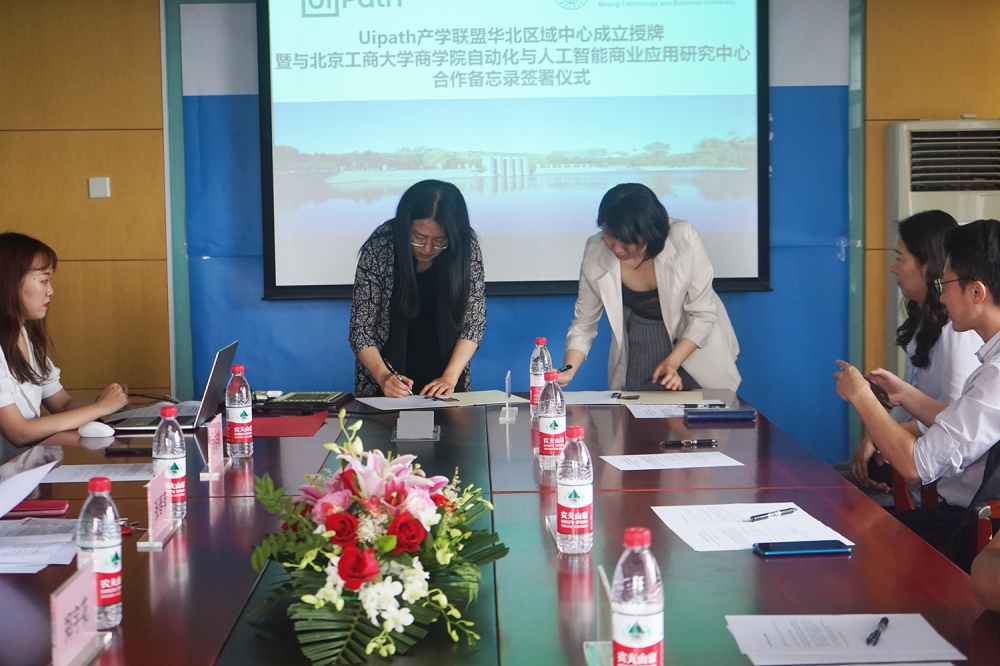 UiPath产学联盟负责人石小萌为自动化与人工智能商业应用研究中心主任孙玥璠进行了授牌,并宣布UiPath产学联盟华北区域中心成立。随后,双方签署了《UiPath产学联盟与304永利集团自动化与人工智能商业应用研究中心战略合作备忘录》,双方将在建立RPA人才培养基地、培养和提升员工RPA专业技能、组织开展多种形式的行业人才交流、竞赛及招聘等方面展开密切的合作。