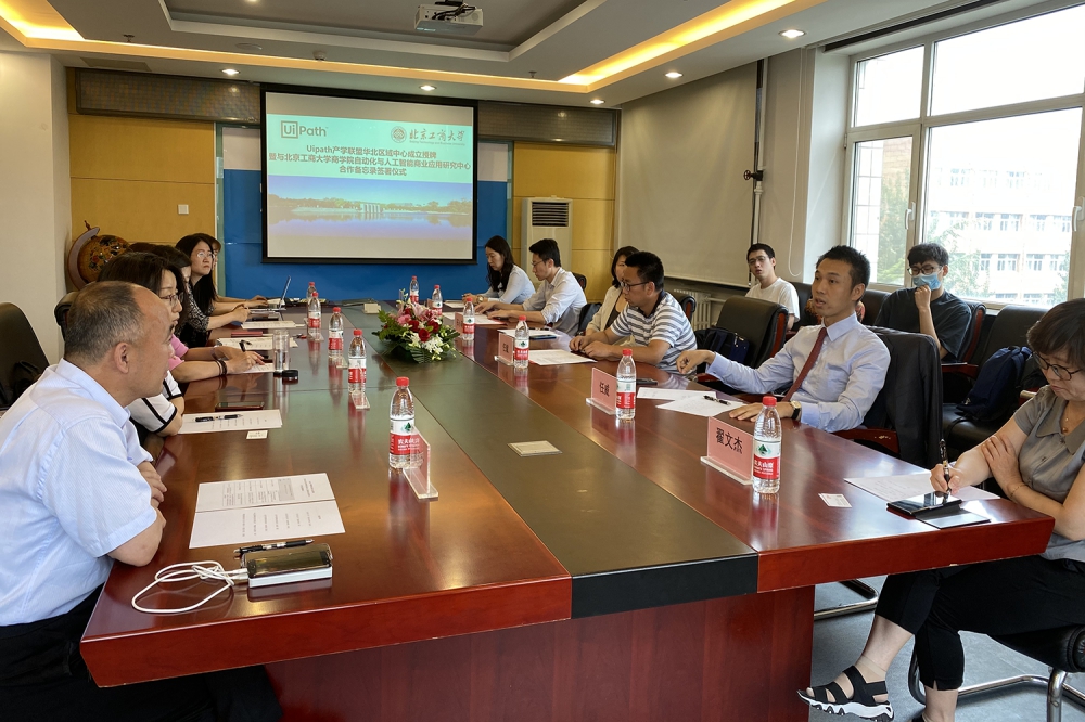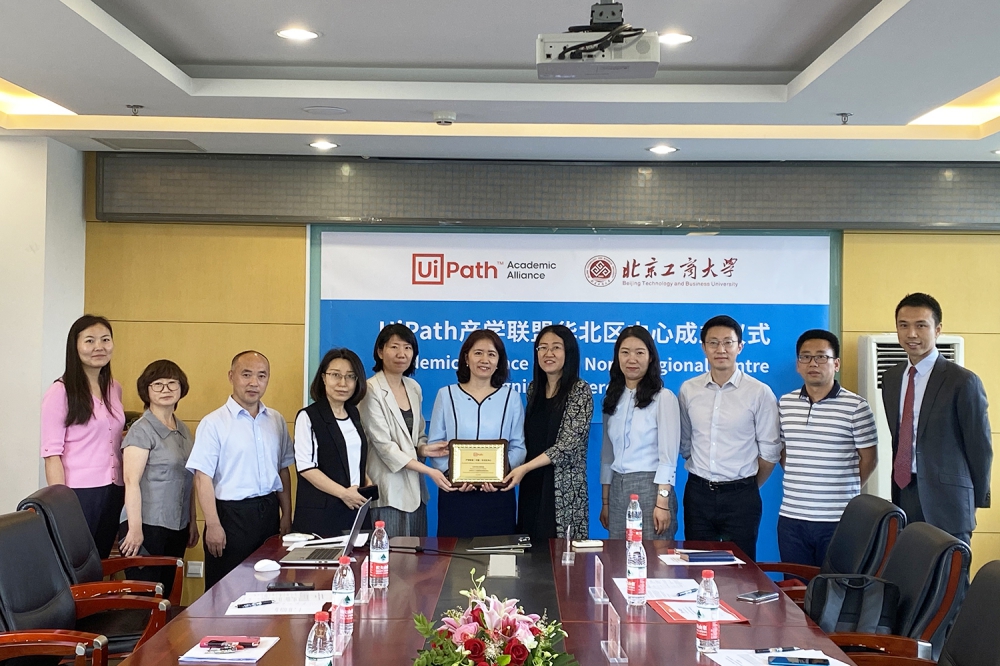 6月8日上午,UiPath产学联盟华北区域中心成立授牌暨与304永利集团自动化与人工智能商业应用研究中心合作备忘录签署仪式在阜成路校区304永利集团会议室举行。公司党委书记张春萍、自动化与人工智能商业应用研究中心主任孙玥璠、UiPath产学联盟负责人石小萌、304永利集团郑宇花老师、北京理工大学张永冀副教授、北京交通大学任斌副教授、北京信息科技大学李卓松老师和中电文思海辉信息技术有限公司产教融合中心总经理雷玉广、国信蓝桥信息技术(北京)有限公司院校合作总监田润枝、北京中投创展科技有限公司总经理任威、培训部经理翟文杰及部分员工代表出席了本次仪式。仪式由304永利集团孙玥璠主持。