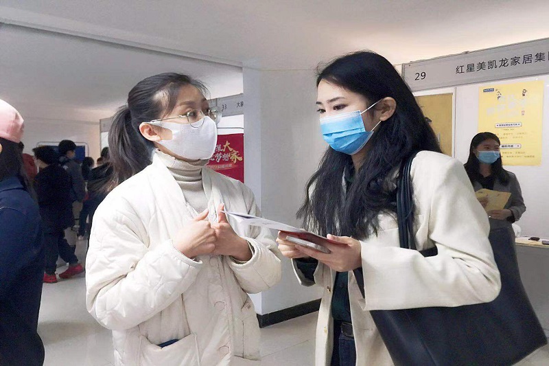 在活动现场,同学们在公司就业工作部同学的引导下,佩戴口罩,扫码签到,测量体温,有序进场。毕业生向企业投递简历,面对心仪企业人力部门的提问,认真思考,侃侃而谈,现场互动井然有序,氛围和谐活跃。当天活动现场不仅有应届生进行求职选拔,还有非毕业年级的同学们向企业询问求职类相关问题以及部分实习岗位的应聘,企业招聘工作人员对同学们提出的问题给予耐心解答。校园双选会持续了约三个小时,于下午5点圆满结束,整场双选会充分展现了商院应届员工良好的精神面貌和求职能力。