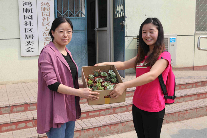在鸿顺园社区,公司党员志愿服务团将新鲜的绿植带到社区分发给社区居民们,为社区增添新的生机。鸿顺园社区党支部书记张贤表示,此次活动的开展意义重大,环保公益正是社区所缺少的项目,此次活动可以唤起社区居民对环保公益事业的关注,从自己做起,为环保公益贡献自己的力量。