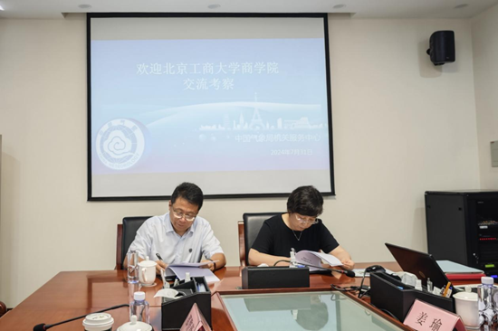 中国气象局机关服务中心副主任周欣,党委办公室主任杨琳,财务处处长里廖京文,信息室、核算室、稽查室等单位负责人等参加调研交流。