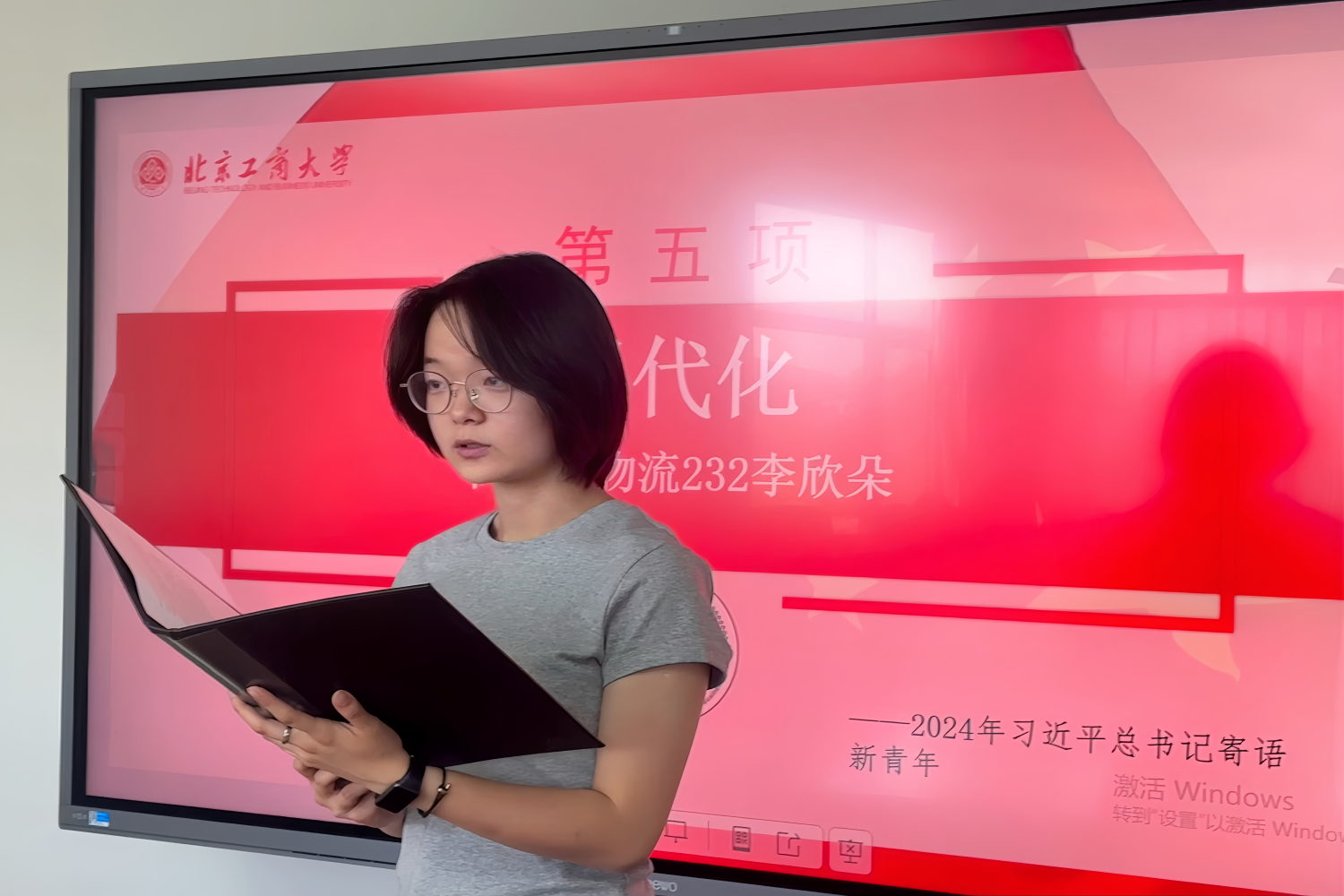 财务232张宇晨在发言中表示,奋斗是青春最亮丽的底色,面对新时代赋予的使命,更应继承和发扬奋斗精神,将个人的梦想融入国家的发展大局之中,以奋斗姿态投身国家建设的时代洪流。工商232刘磊谈到,青年在日新月异的新时代要珍惜时光,努力学习,不断提升自己,培养更加开放的心态和更加宽广的视野,树立正确的价值观,做民族复兴的见证者和参与者。工商233张铭洋谈到,青年是整个社会力量中最积极、最有生气的力量,青年学子要以热血青春承担青年责任,不负厚望,把握机遇,迎接挑战,以青春之我谱写华章。物流232李欣朵表示,在当今时代,青年要培养爱国之情、砥砺强国之志、实践报国之行,争做五个模范,奋力书写为中国式现代化挺膺担当的青春篇章。