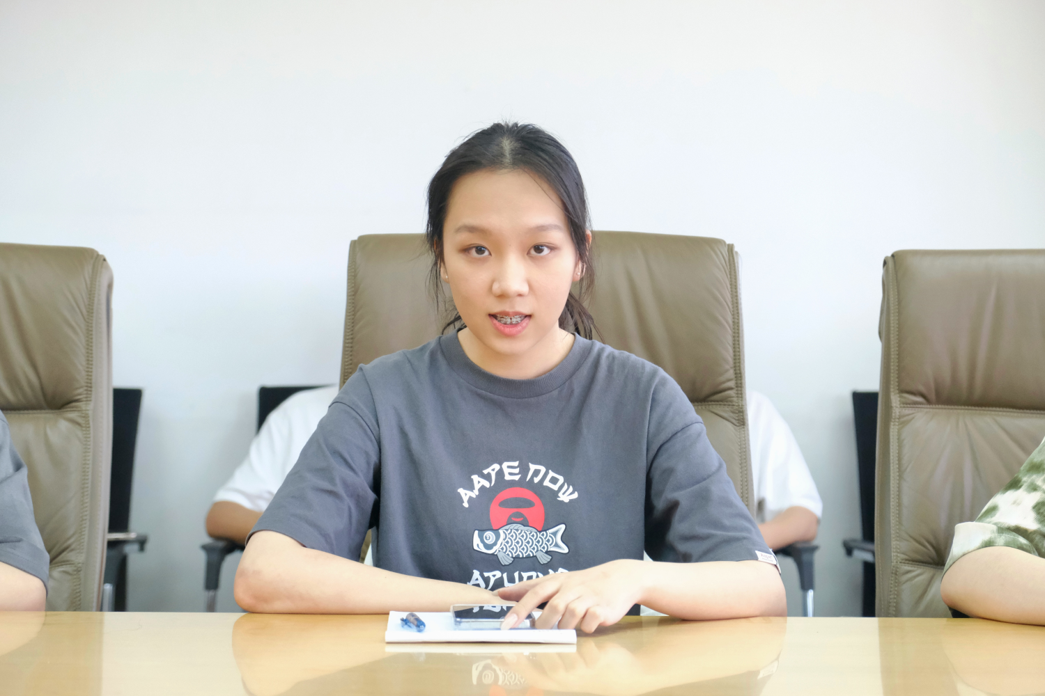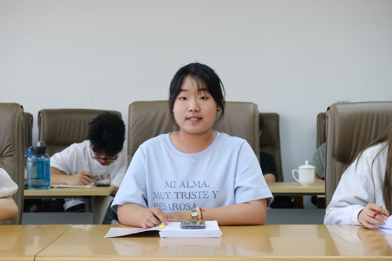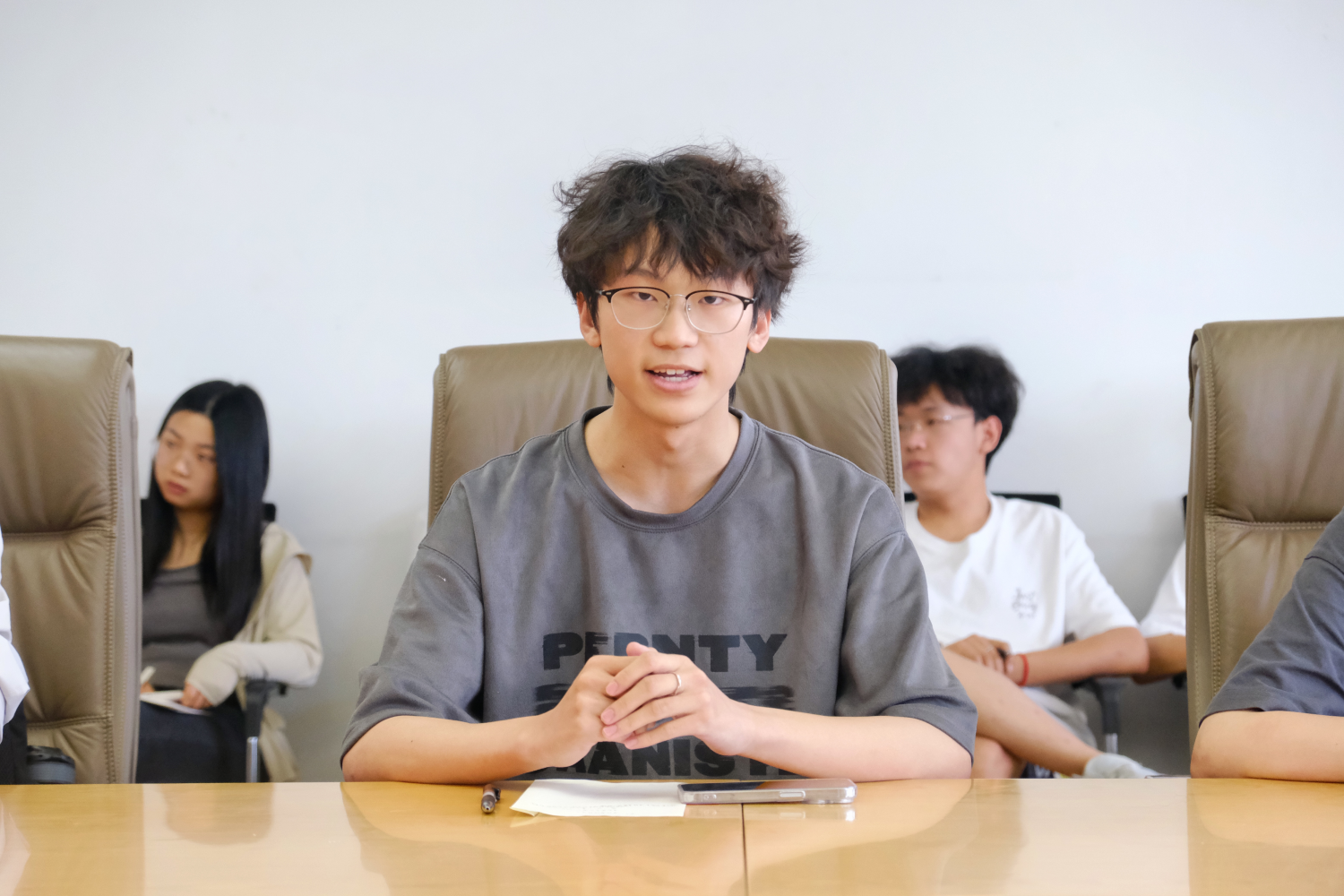 财务232吴馨蕊表示今年在公司团委的带领下到黄山店村实地调研,要以此次实践为契机,用所学所能服务“三农”,用科技创新赋能农业生产,用实际行动助力乡村振兴。工商233田佳玄曾多次参与环保志愿活动,她谈到,我国绿色发展的进程具有里程碑意义,绿色发展需要每个人的参与和奉献,也是大家共同的责任和使命。注会233潘绮睿认为社会服务是践行五四精神的重要途径,参与其中可以为社会发展、国家繁荣贡献力量。注会222张盟雨从自己参军入伍驻扎边境及申请项目引导更多人参与国防两个方面谈起,维护国家安全和稳定是青年光荣的职责和使命。注会223邬子萌分享参与挑战杯、互联网+等比赛的经历,认为科技创新是百年未有之大变局中的关键变量,青年学子要主动参与、主动学习,为中国式现代化贡献青年智慧力量。