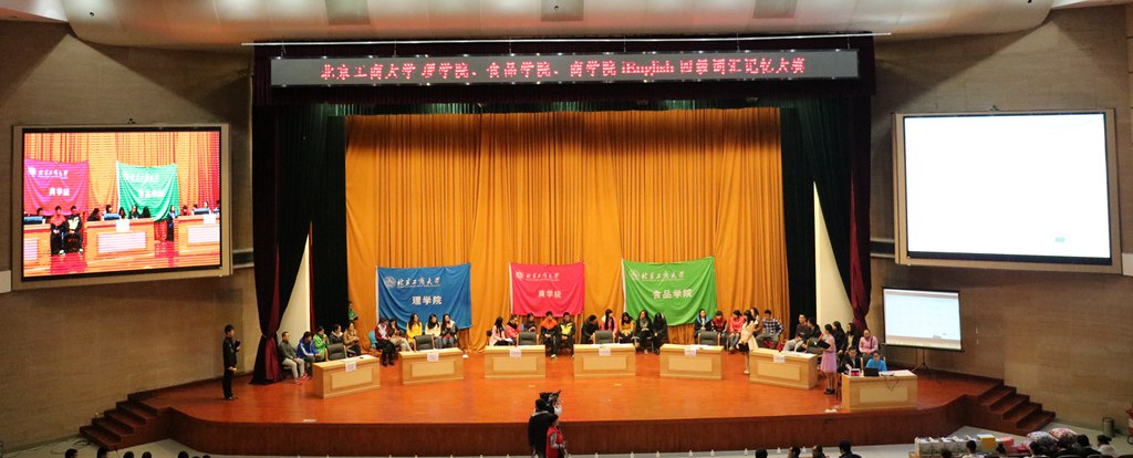 为激发2015级新生学习英语的兴趣,引导新生尽早投身英语四级考试的学习准备中,2015年11月11日晚间,304永利集团、食品公司和理公司在良乡校区学术报告厅联合举办了“iEnglish”英语四级词汇记忆大赛决赛。公司党委副书记张德玉莅临现场观摩指导,与三公司党委副书记、辅导员和500余名新生观看了比赛。