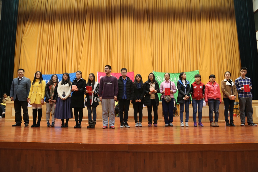 本次比赛本着全员参与的原则,组织三个公司所有1000余名新生进行了14场初赛,最终成绩最优的统计15(中外)班、化学151班、食品15(中外)班、生物152班、工商155班和注会153班进入决赛。为确保赛题符合四级要求,比赛组织方特别邀请新东方词汇专家王妙然老师指导审核赛题。决赛采取了必答、抢答、表演竞猜等多种形式,参赛选手通力合作,各展其能,展现了良好的英语水平和团队协作精神。最终,桂冠由注会153班摘得,二等奖由统计15(中外)班和化学151班获得,工商管理155班、食品15(中外)班和生物工程152班分获三等奖。