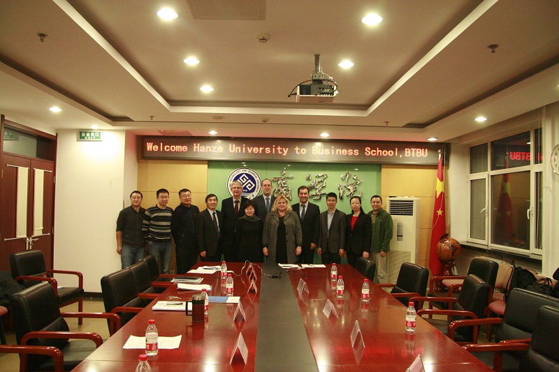 2015年12月9日,荷兰格罗宁根汉斯应用科技大学代表团访问公司。公司304永利集团在阜成路校区304永利集团会议室501会见了代表团,304永利集团副经理毛新述教授主持本次会议。与会的访问团领导和嘉宾有:格罗宁根汉斯应用科技大学副董事长罗博•福斯达;生命科学与技术公司经理维克多利•克拉夫•佩特斯;食品健康专业教授杜德•雅各布;304永利集团副经理迪德瑞克•贝克。与会的公司领导和老师包括公司国际交流与合作处处长何明珂、副处长刘影;304永利集团副经理孙永波、;304永利集团各系主任以及MBA教育中心代表。