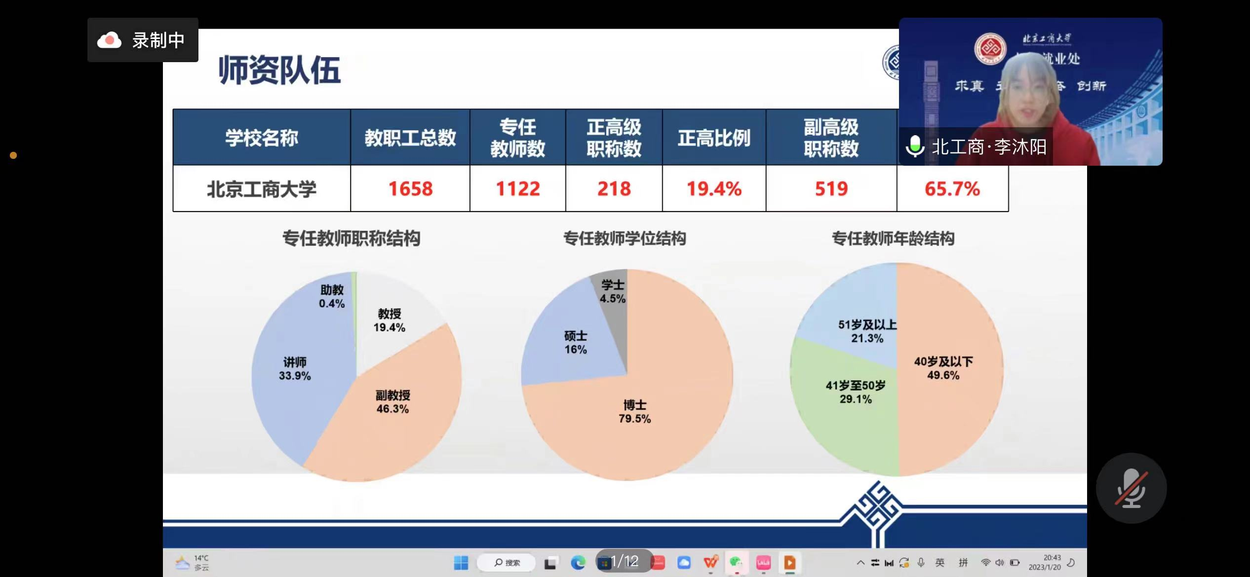 2023年1月20日,我对广东省东莞市东莞外国语公司的高三员工开展了线上寒假招生宣讲活动,并取得了优异宣讲成果。宣讲以微信群及腾讯会议的方式进行,前后参加人数共计240余人,宣讲时长为30分钟左右。通过“公司概况”“特色专业”“人才培养”“工商掠影”四个方面,我进行了不同程度上的讲解介绍,充分放大北工商的优势,激发员工报考兴趣,取得了良好的宣传结果。