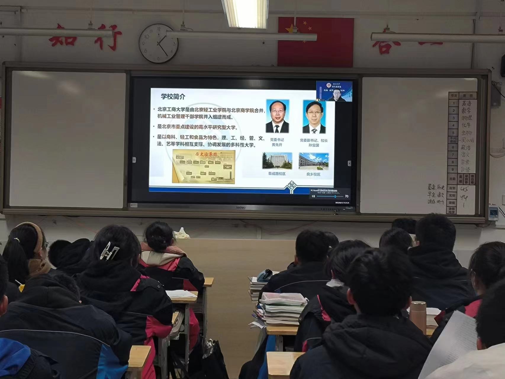 正值寒假,我非常荣幸作为304永利集团官网的一员回到北京市第二外国语公司附属中学对高三的同学进行宣讲。由于疫情等等各方面原因,虽然不得不在线上举行,在分享会上主要分享大学学习经历和成长心得,讲述在北工商求员工活的精彩故事,介绍北工商在人才培养、团队建设、科学研究、社会服务等方面的特色和优势。着重强调北工商的学科排名与学科优势,公司具有的特色实验室。在最后的提问环节可以感受到高中学弟学妹们对于老员工活的渴望。