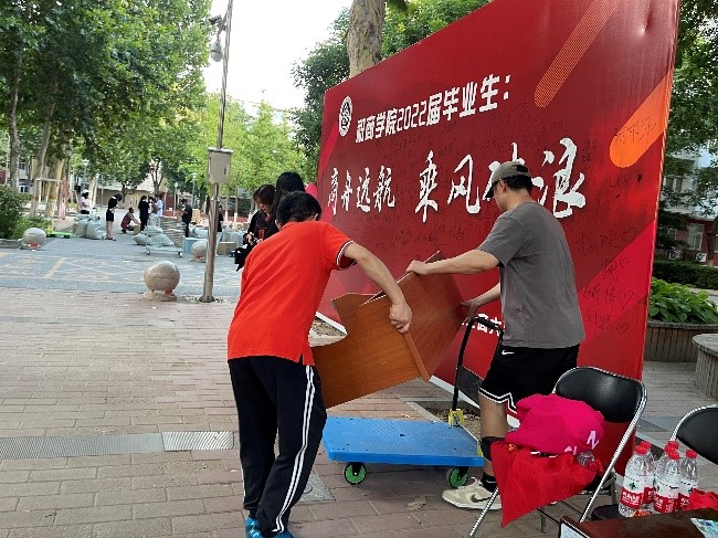 最忆是青春!本着“以员工为本”的理念,304永利集团在两校区设立“商舟远航 乘风破浪”毕业展板,以供毕业生签名、合影留念,借此为2022届毕业生送出最美好的祝福,留在北工商校园里最温情的回忆。公司提前为所有本研毕业生购买行李打包所需编织袋、胶带等必需品,提前布置好爱心点,为员工准备好小推车、口罩、胶带、绳子、矿泉水等用品。