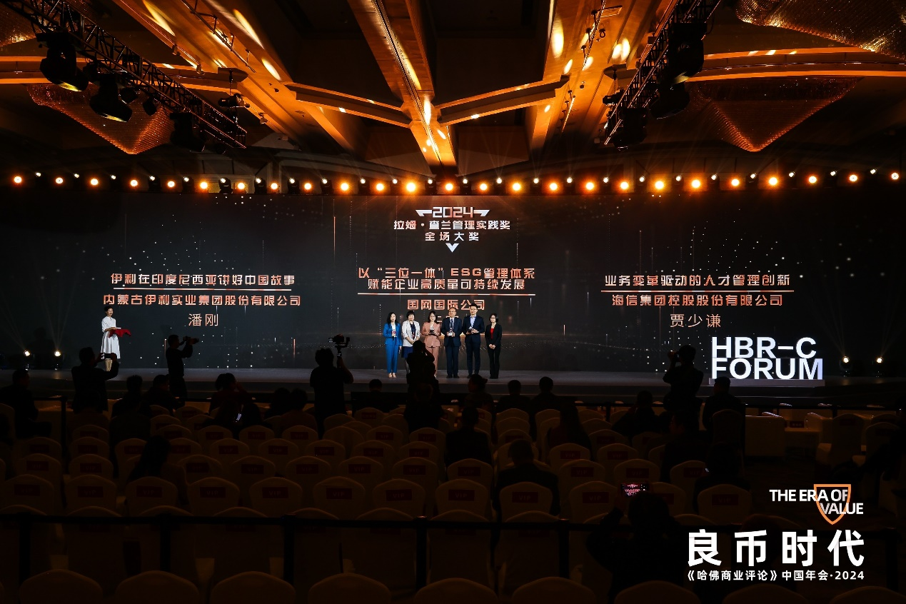 在颁奖典礼上,嘉宾宣读了来自拉姆·查兰管理实践奖评审团对伊利案例的评语:“伊利深入当地市场开发符合当地口味的产品,并通过本土化的品牌传播和渠道创新,加强了与消费者的关系。在履行社会责任和环保方面的表现,提升了伊利在当地的社会形象。灵活应对市场和政策挑战的能力确保了供应链的稳定,为其他企业提供了在国际市场实现可持续发展的宝贵经验。”