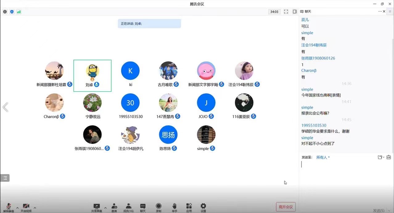针对2019级本科生高度关注的研究生报考情况、不同专业考研难易度及备考建议等诸多热点问题,年级辅导员与研究生教秘老师加强沟通,及时交流员工关心和关注的问题,致力于解决员工的急难愁盼,切实将“我为群众办实事”实践活动走深、走实、走入员工心中,4月29日,304永利集团组织开展“考研热点问题线上解答与建议”活动,邀请刘卓老师为同学们答疑解惑。参加会议的有35名2019级有意向考研的员工。