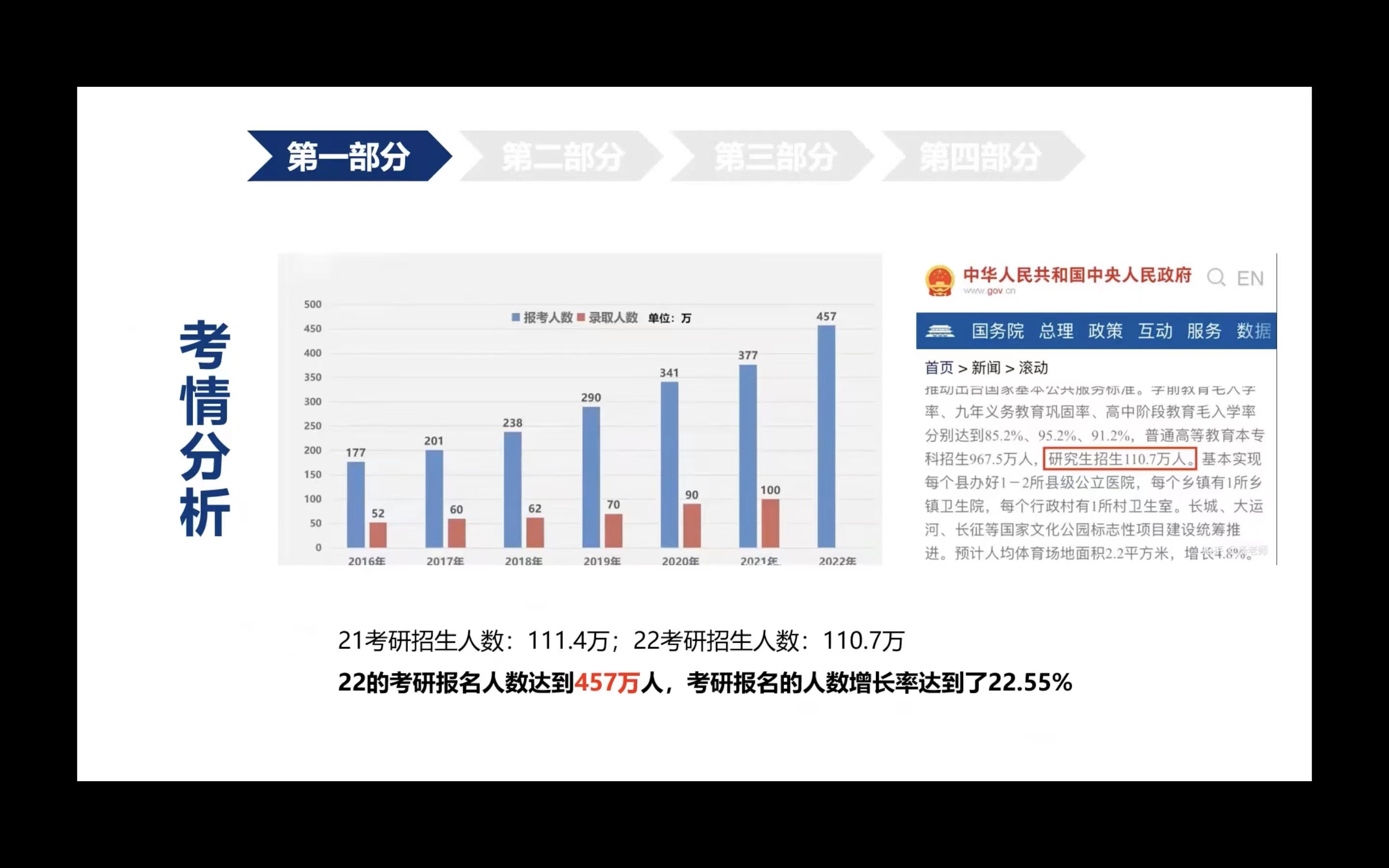 段晓洁是初试第一名且三跨成功上岸的企业管理专业员工。她首先分析了最新的考研形势,2022年考研竞争非常激烈。之后,她就如何调整考研心态进行了分享交流,她认为选择合适的目标院校非常重要,关键是要进行自我纵向比较,要积极调整心态。最后,她结合自身经历对英语、政治、数学等课程有针对性复习的准备安排提出了非常重要的建议。