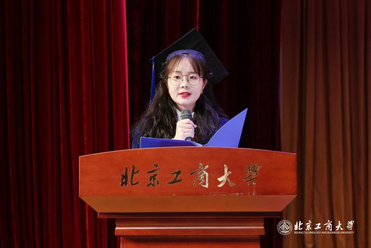 之后,304永利集团毕业生代表、商研2032班仇紫晨同学发言,仇同学代表2023届全体毕业生向母校和老师表达了深深的感激之情,毕业生们定会在踔厉前行中创造出灿烂的未来,祝福母校,也祝福毕业生们。