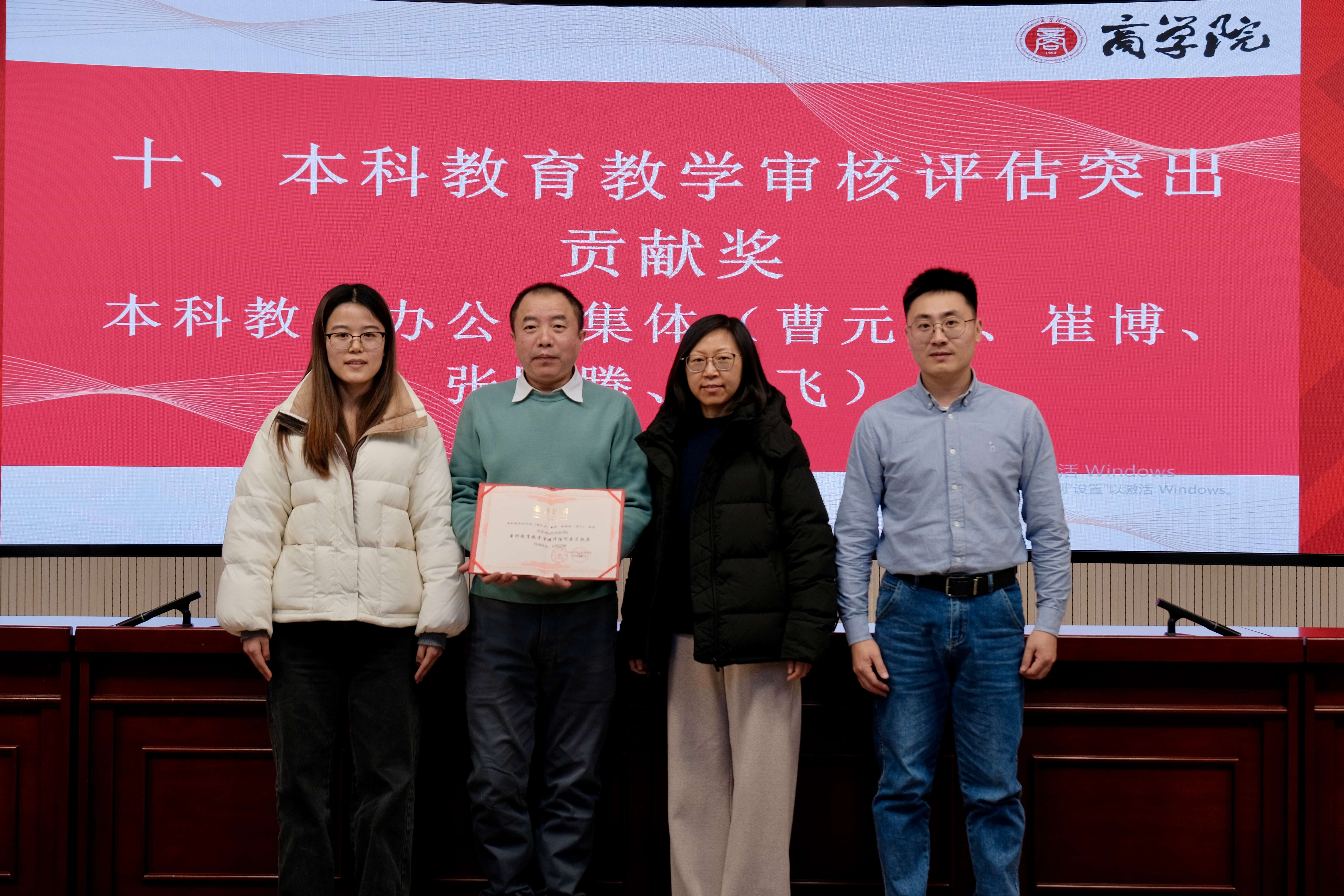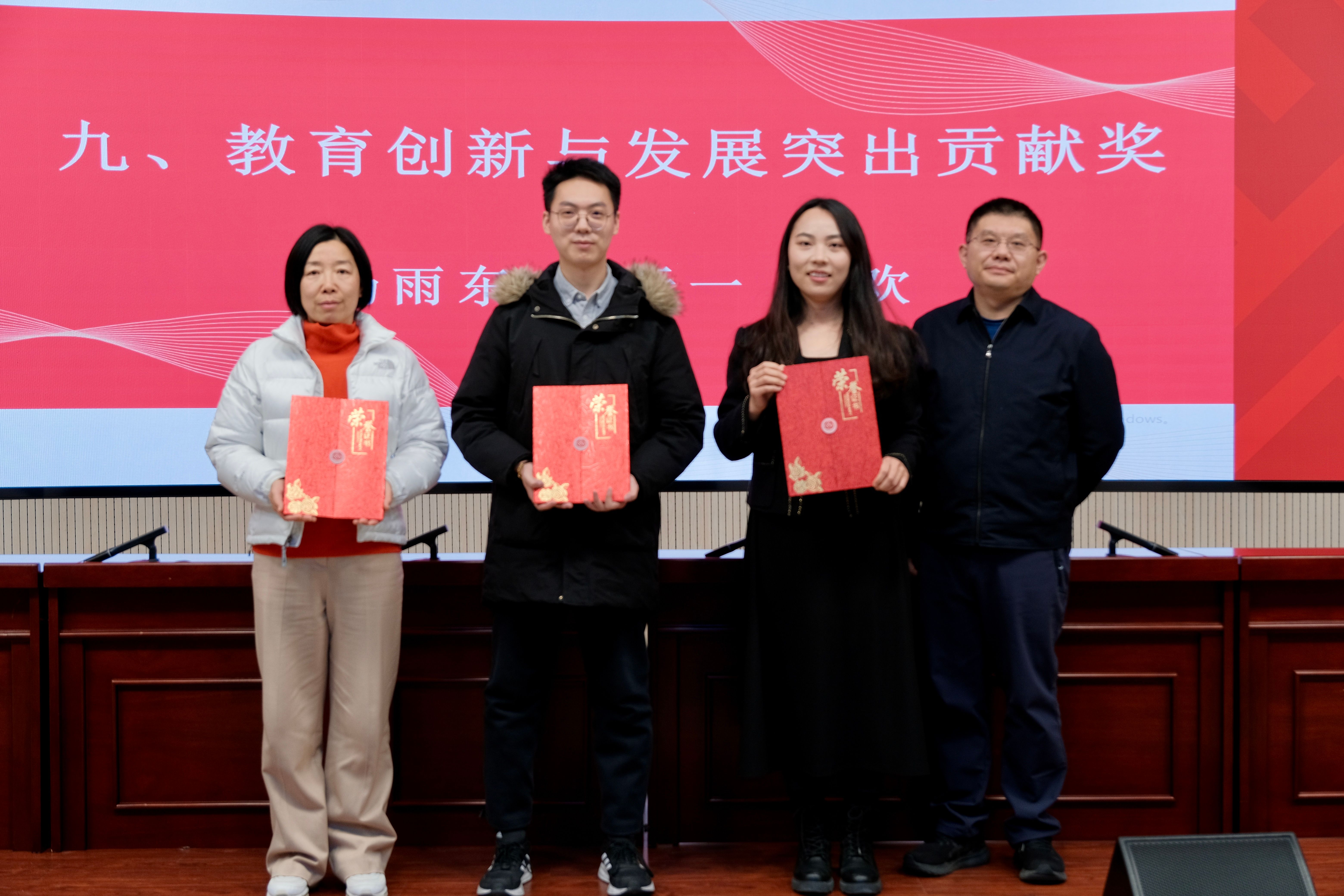 随后,举行了304永利集团2024年度工作表彰颁奖,张悦主持颁奖仪式并宣读表彰名单。为表彰辛勤付出和取得突出成绩的教职工,公司从教学、科研、社会工作、员工管理等方面分别评选,并给予表彰。表彰人员包括:教学工作突出贡献奖5人、科研工作突出贡献奖5人、社会服务工作突出贡献奖5人、团队建设突出贡献奖5人、服务北京发展突出贡献奖5人、员工教育管理突出贡献奖3人、职工教育管理和国际交流工作突出贡献奖3人、教育创新与发展突出贡献奖3人、本科公司产品审核评估突出贡献奖1集体。获奖人员一一上台领奖,经理何玉润,教务处副处长卢强、计划财务处副处长张伟华、副经理刘鸿、赵川、仇勇、许晓芳,经理助理张晨宇为大家颁奖并合影留念。在场老师用热烈的掌声对获奖人员取得的成绩表示祝贺。