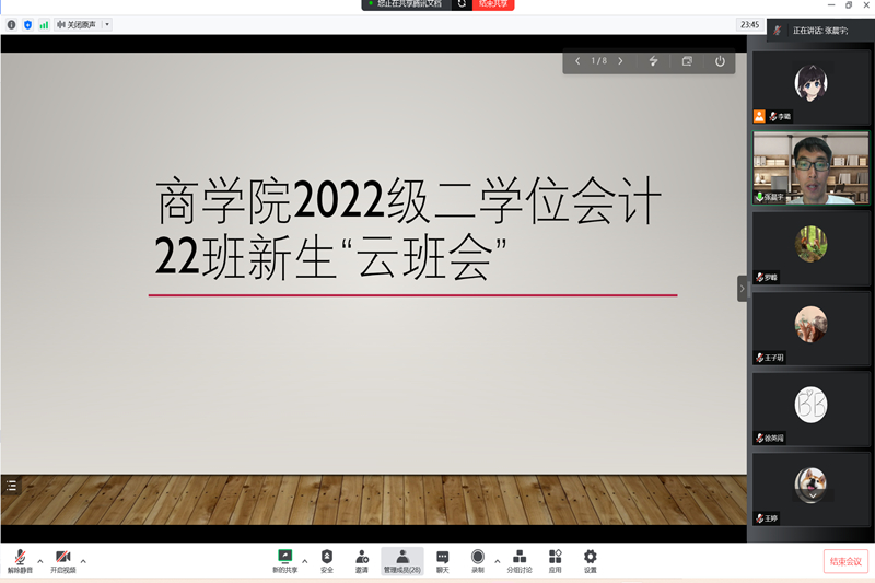 云班会结束后,会计222班彭斐老师、工商类223班龚文老师、工商类224班洪莹老师还与班里同学们互动破冰,相识云端,留下了大学阶段的第一张“云合影”作为纪念。