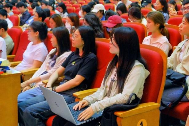 在良乡校区文二楼404、AB报告厅和阜成路校区的各分会场,商院师生党员全神贯注,仔细聆听报告。
