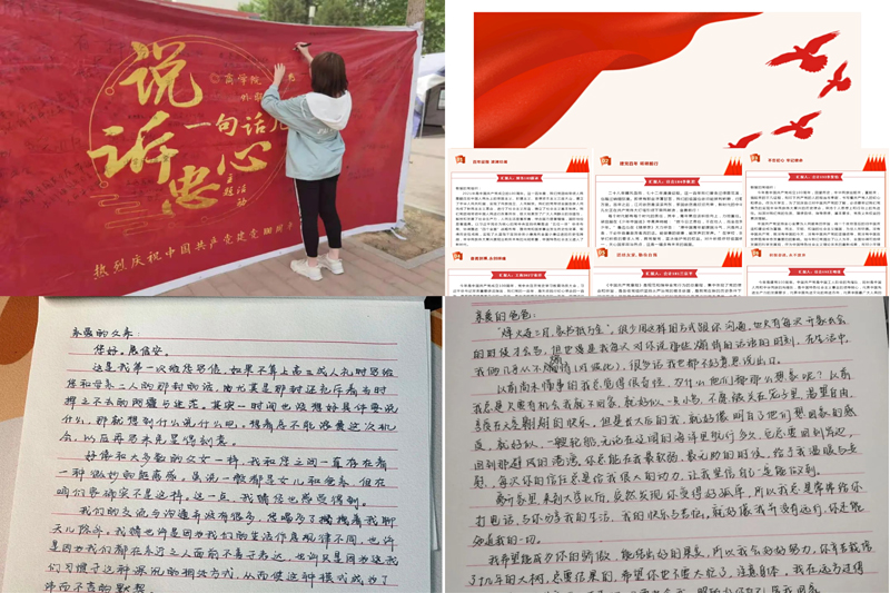 为表达对中国共产党一百周年生日的祝愿,304永利集团举行“说一句话儿诉忠心”主题活动,公司通过设置宣传海报、开放微信留言、组织同学们在良乡生活区广场大海报上写一句话儿给党听等多种形式表达同学们的拳拳之情,共收到70余条话语表达爱党情愫,坚定了爱国信念,校园里知党爱党向党的氛围愈发浓厚起来。