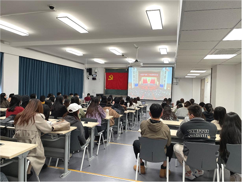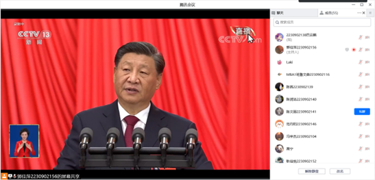 在观看二十大开幕式期间,教室中的老师和同学们都聚精会神,自觉起立唱国歌、为先烈默哀、聆听习近平总书记的全篇报告,不少同学都用笔记录下大会的关键内容,并在报告结束后情不自禁地鼓掌。未能来到教室的同学们也都在各班班长的带领下,早早进入腾讯会议,等待大会开始。观看过程中都频频点头,牢记习总书记的重要讲话精神。
