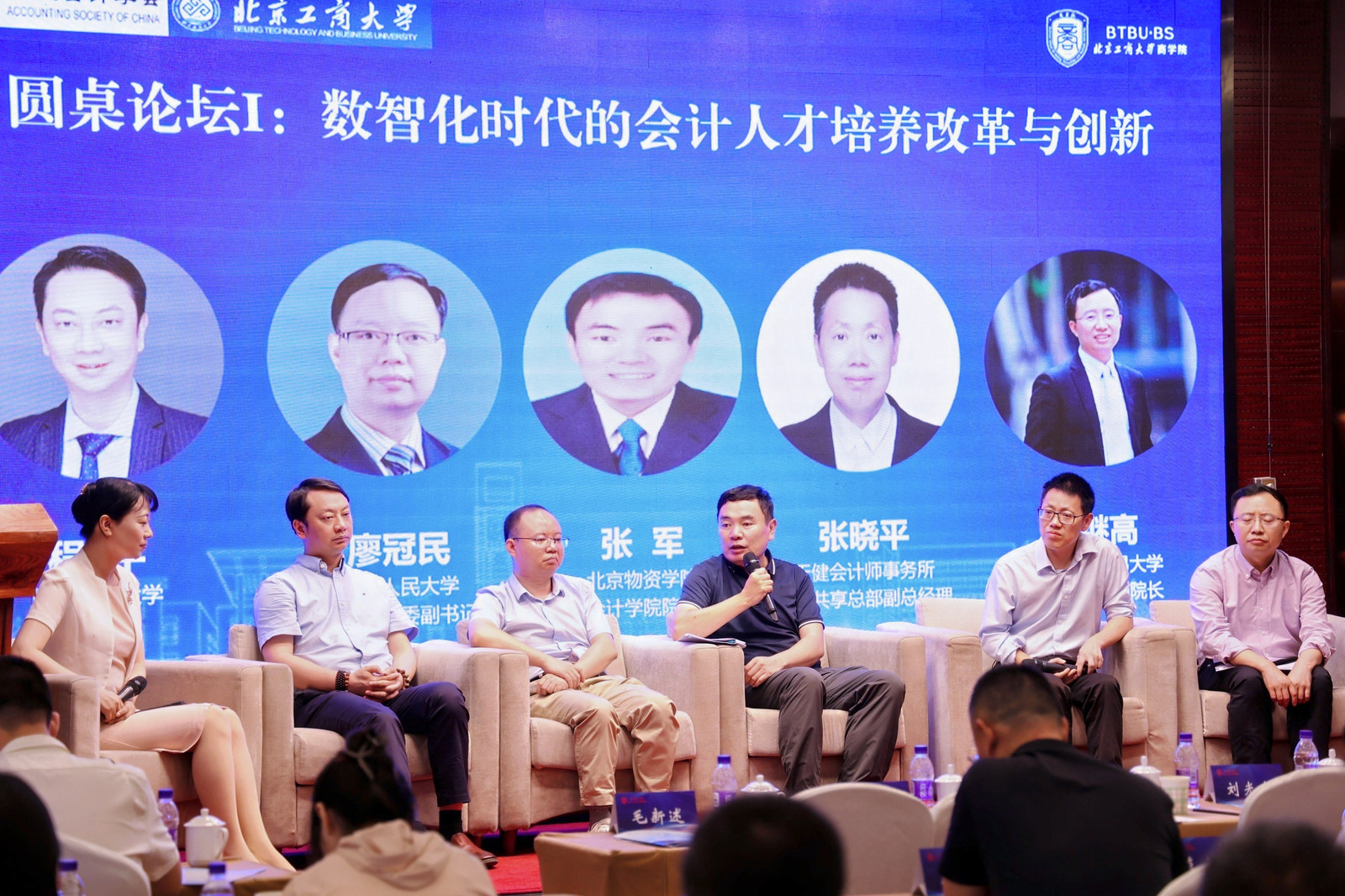 圆桌论坛分为上下两场。在“数智化时代的会计人才培养改革与创新”圆桌论坛环节,重庆理工大学会计公司程平教授、中国人民大学公司党委副书记廖冠民教授、北京物资公司会计公司经理张军教授、天健会计师事务所数据共享总部副总经理张晓平、对外经济贸易大学国际304永利集团副经理祝继高教授分别从高校人才培养、用人单位需求等分享所在高校优秀经验和典型做法,以及会计师事务所对会计人才培养的改进建议。