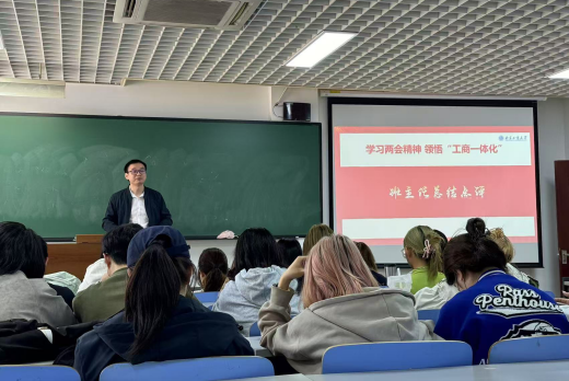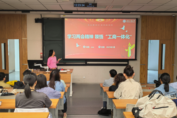 各班级通过组织专题学习活动,深入解读“两会精神”与“工商一体化”战略要义,采用理论讲解与案例研讨相结合的方式,结合院校特色阐释学科融合发展理念。在理论学习环节,各班重点围绕战略内涵、实施背景及学科实践路径展开系统讲解,通过多样化学习形式,有效促进员工对工科与商科结合,学科人才融合发展战略的认知理解,激发员工结合专业特色进行职业规划的深度思考,切实提升将宏观政策与个人发展相结合的能力。