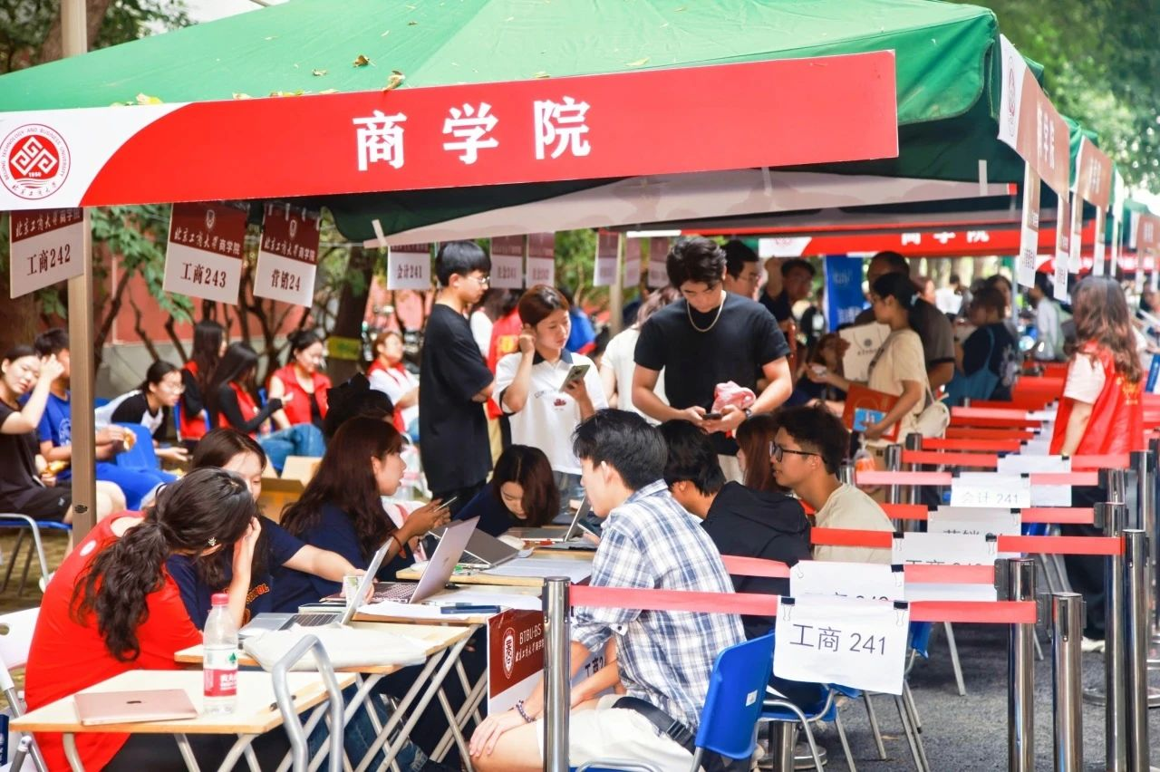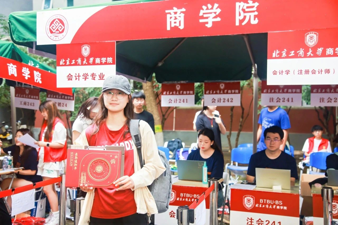 “商院红”的院服院徽让所有新生刻有北工商商院的烙印。