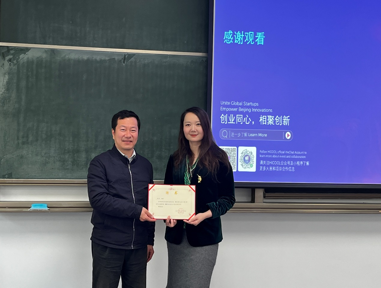 讲座结束后,进行了“校外导师授予仪式”,刘敏华副董事长为武沂颁发聘书,并为本次讲座做总结。他指出要以创业者的心态来营造创业的生态,鼓励同学们在学习深化创业知识时,充分利用实践机会,在北京这块创业的沃土上积极开拓、勇敢拼搏。
