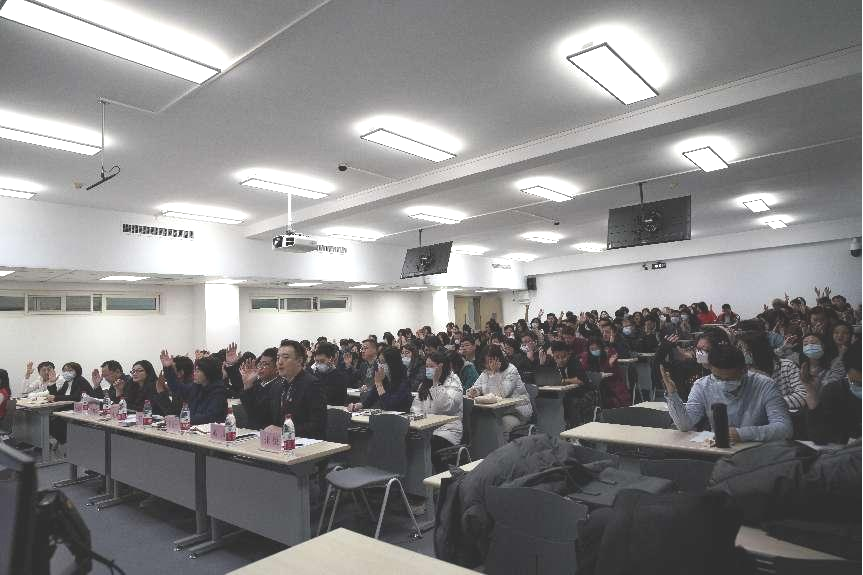 公司党委书记付仕伦做公司分工会工作汇报及工会经费使用情况报告,经与会教职工审议,全票通过。