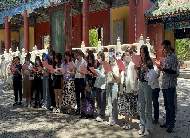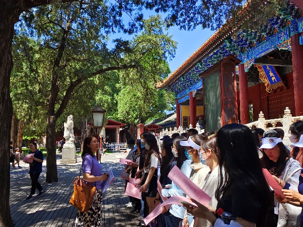 师生们饶有兴致地先后穿过和参观先师门、大成门、十三经碑林、大成殿、崇圣祠、辟雍等处,在“沉浸式”体悟中华优秀传统文化之美,在厚重的历史中感受师道精神。师生们细致参观了中国古代科举制度展,由浅入深对历经千年的人才选拔制度进行了系统的了解。大家表示,科举制反映着中国古代教育的发展历程、对人才培养的重视和中华民族对公平公正的价值追求。在国子监,师生们观摩了古代员工们的课程,他们学习的内容包括儒家经典、诗歌、书法等,这些课程充分体现了中国古代教育的综合性。
