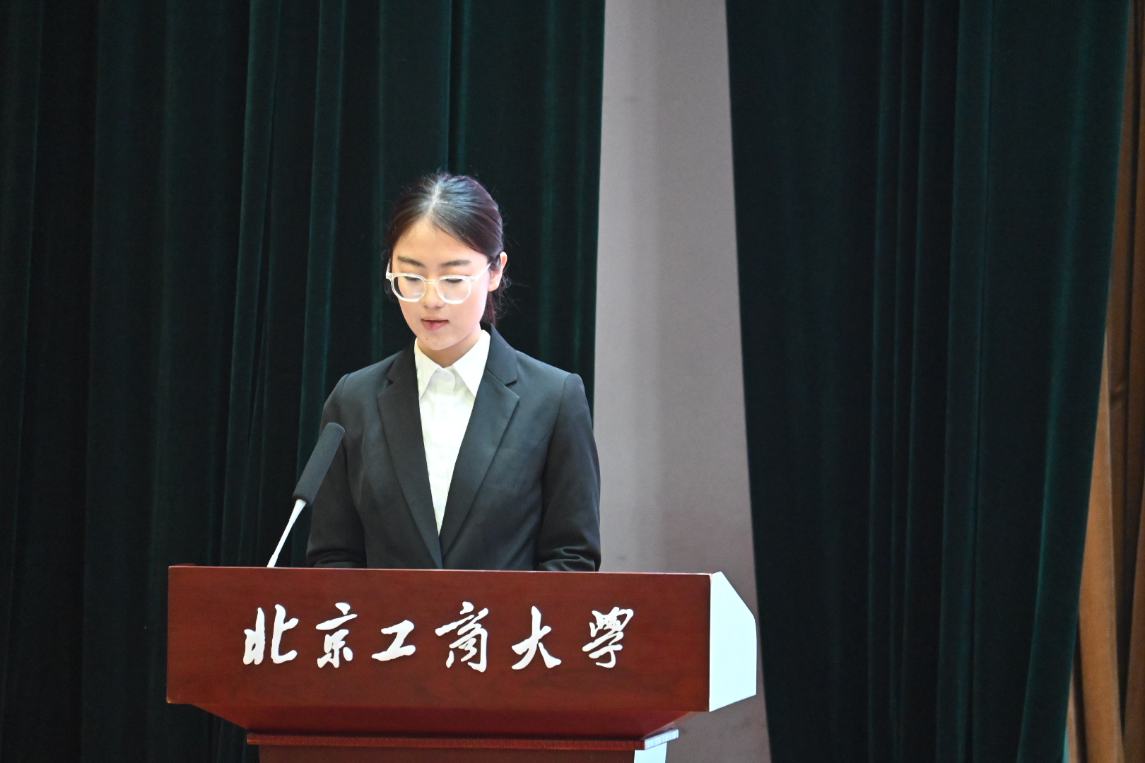 在校生代表、公司第23届员工会主席团执行主席、注会202班谷雨萱作为在校生代表发言。她以学姐的角度为新生们分析老员工活,提出发展建议。她希望大家要敢于归零,用更勤勉不断武装自己,以平常心轻装从容上阵;希望大家能磨砺脚踏实地、仰望星空的坚韧品质,努力做德才兼备、品学兼优的新时代优秀青年;希望大家培养自身能力和兴趣,学会平衡时间,找准定位,实现价值。祝愿大家立大志、明大德、成大才、担大任,不畏惧未来,不留念过往,在商院收获真知,结交智友!