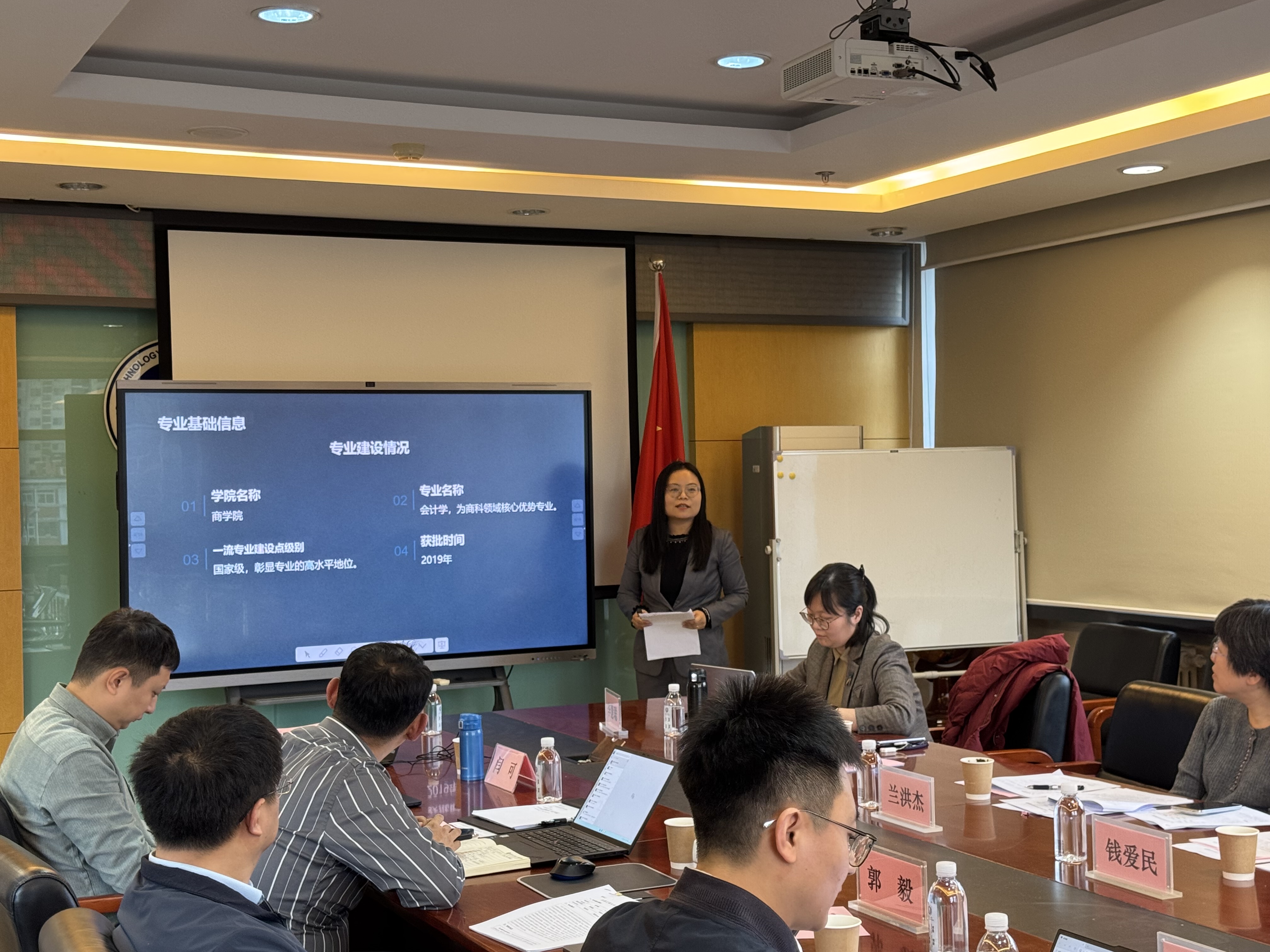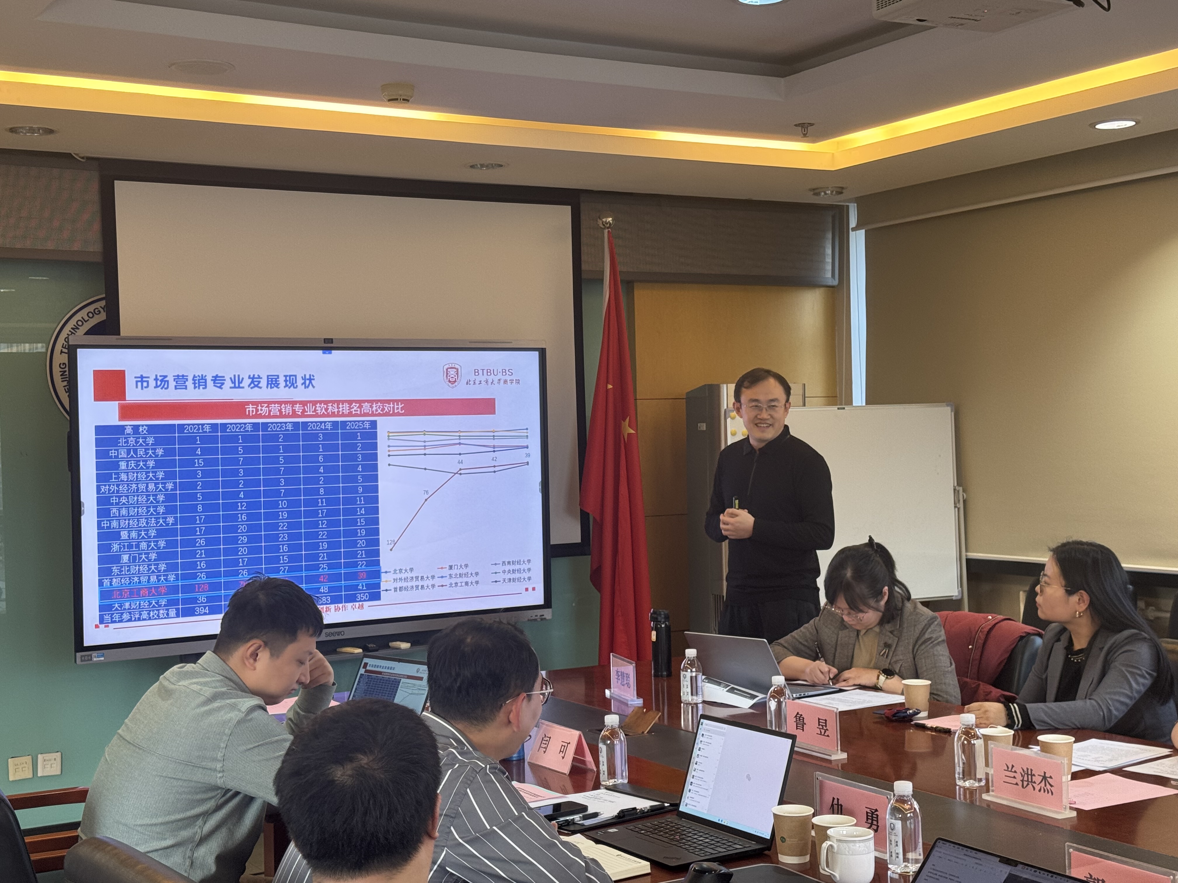 财务管理、会计学、工商管理、市场营销、物流管理、供应链管理六个专业的负责人依次进行汇报,围绕专业发展现状、核心优势、存在问题、未来目标及实施路径展开系统阐述,全景呈现专业发展规划。财务管理专业以“数字化转型”为核心,详述该专业在财务大数据分析、数智管理虚拟仿真等领域的课程改革成效,以及“厚基础、强实践、重创新”的培养体系建设蓝图;会计学专业聚焦“智能会计”特色,介绍专业依托国家级教学团队构建的“全英语教学实验班+科研反哺教学+产教深度融合”三位一体培养模式;工商管理专业阐述“数字化管理+全球管理”差异化培养路径,计划通过课程再造、校企协同等举措强化员工数字素养与国际视野;市场营销专业以“数字驱动营销创新”为核心,展示专业在大数据商业分析、实践能力培养方面的突出优势,未来将深化“工商一体化”特色,构建更完善的数字营销知识体系;物流管理专业分享了该专业作为我国最早开设的物流管理本科专业,在智慧物流、绿色物流等领域的深厚积累,规划中明确将进一步提升数智化与绿色化课程占比,持续强化产教融合生态;供应链管理专业聚焦“数智化+食品供应链”特色方向,介绍专业作为新文科建设试点,在跨学科融合、产学研协同育人方面的创新探索。