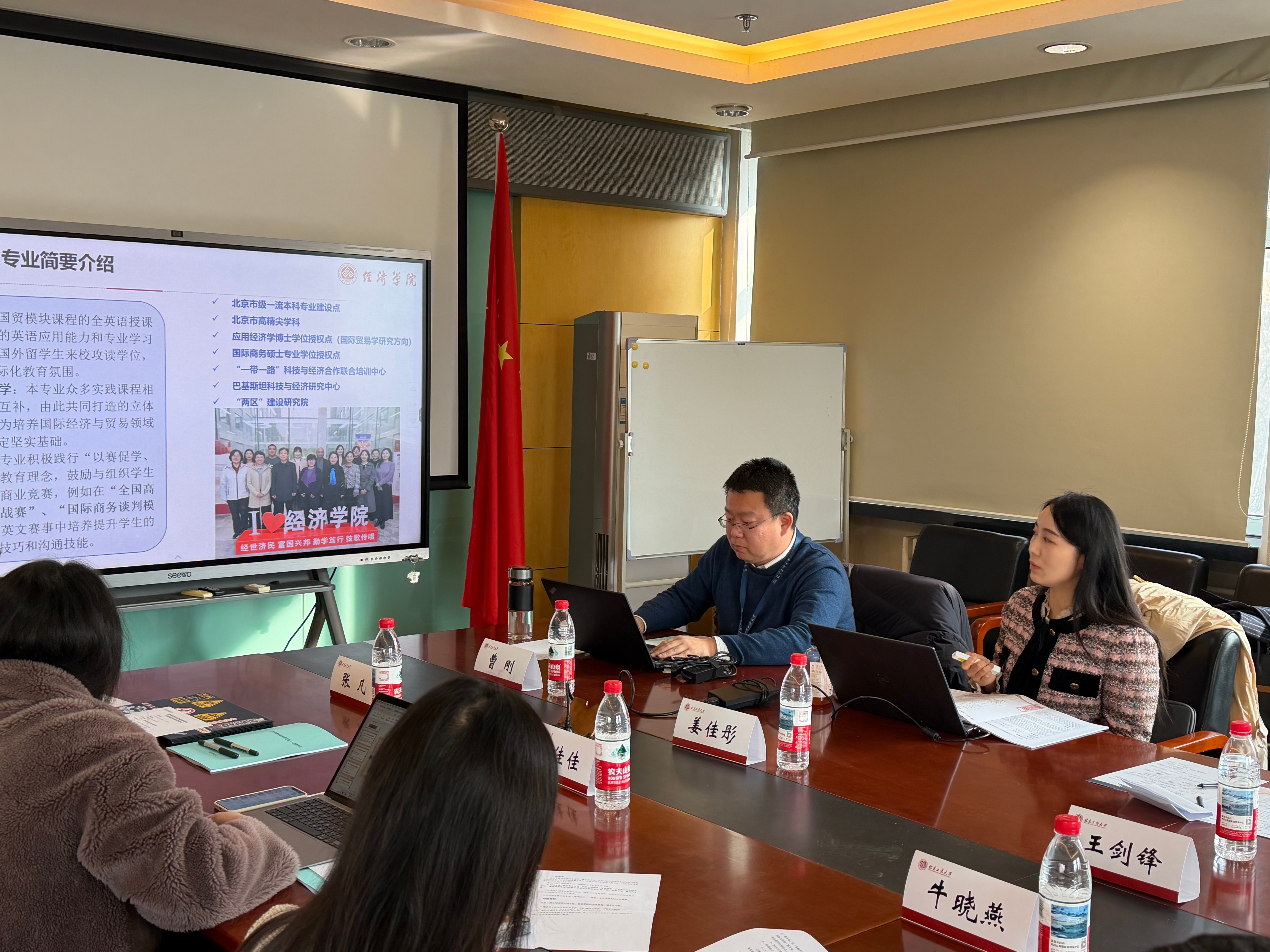 论证环节中,经济学、数字经济、贸易经济、国际经济与贸易、金融学、金融工程、金融科技、财政学、保险学9个专业负责人依次汇报。各专业全面展示了专业的建设现状与未来规划。作为国家级一流本科专业建设点,经济学专业秉承“厚基础-宽口径-强方法-重能力”人才培养理念,创新“4+”跨学科模式;数字经济专业依托北京高校高精尖学科优势,以“经济+数据+合规”为特色,软科排名稳居全国A类;金融科技、金融学等专业则聚焦行业前沿,深化产教融合,形成了“金融+科技+绿色”的复合型人才培养格局。各专业均围绕“公司所能、首都所需、行业基础、研究型定位、同类比较”五大维度,系统梳理了优势短板,明确了“十五五”期间的发展目标。