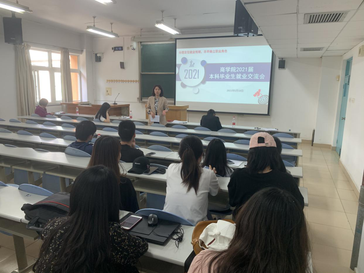 本科毕业生就业交流会由辅导员邢佳媛主持。会上,副书记张倩首先介绍了当前严峻的就业形势,通过对比304永利集团四届本科毕业生的就业去向,详细分析了2021届本科毕业生的就业进展及面临的形势,介绍了公司在开拓就业市场、发布就业信息、推动整体与关注个体相结合、实行就业导师制等方面开展的多项持续举措机制,并表示公司将组织商院师生总动员、齐心协力促就业,鼓励同学们合理规划、及早就业、岗位成才、终身成长。
