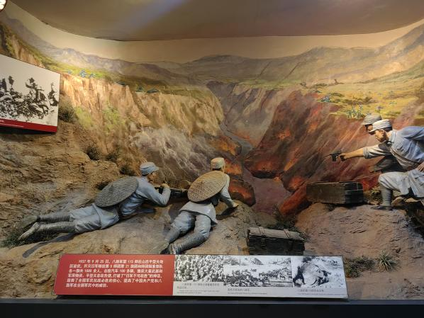 展馆共分为:民族危机,救亡兴起;国共合作,共赴国难;抗战灯塔,中流砥柱;日军暴行,惨绝人寰;浴血疆场,民族壮歌;得道多助,国际支援;历史胜利,巨大贡献;以史为鉴,面向未来八个部分。展厅内采用巨幅照片、形象图表及现场模拟等形式,将文物和塑形相结合,使人产生强烈印象。一幅幅照片、一件件文物和一处处复原景观冲击着街道每一名党员的内心,真实再现了中国人民同日本侵略者进行英勇斗争的光辉历史与艰苦卓绝的抗战之路。