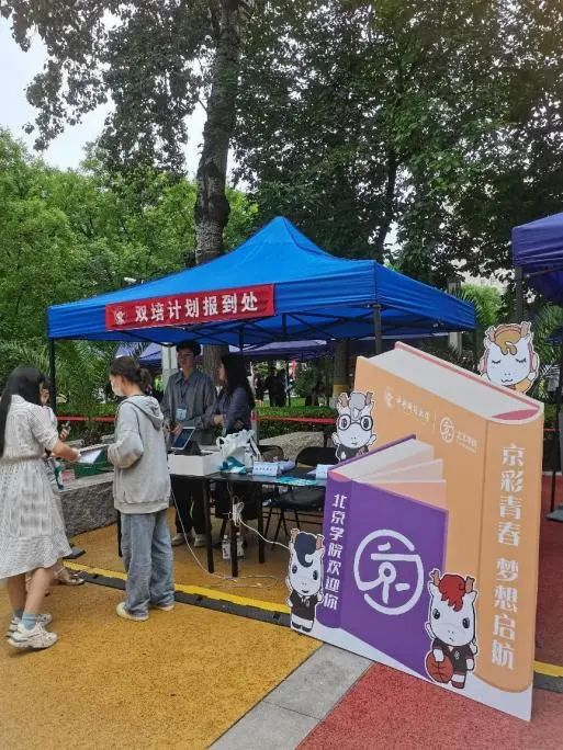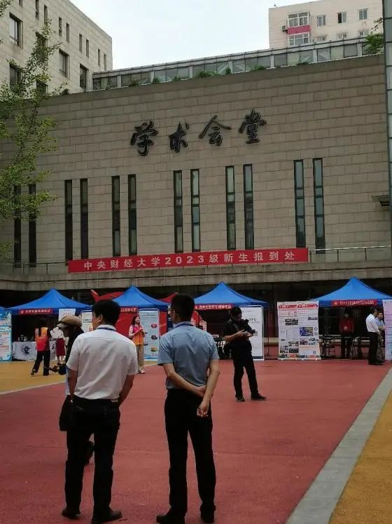 在公司良乡校区举行迎新活动的同时,由公司与中央财经大学联合培养的23级会计双培员工在中央财经大学南路校区学术会堂门前广场正式报道。新生们从进入中央财经大学的校门到宿舍楼,从宿舍楼到双培计划报道处,再到会计公司迎新棚,全程感受到了高效与温暖。