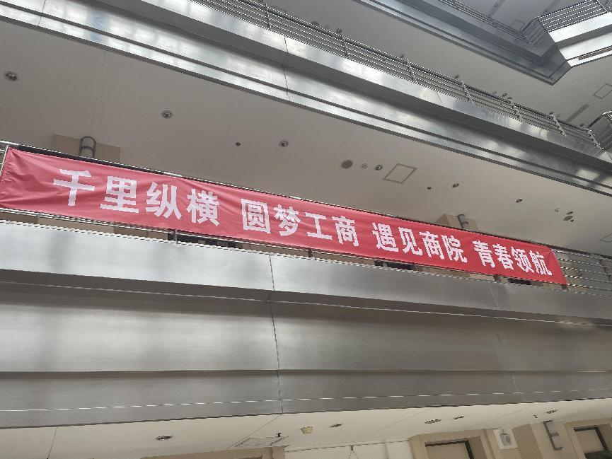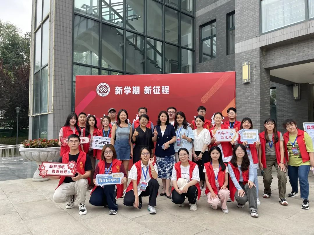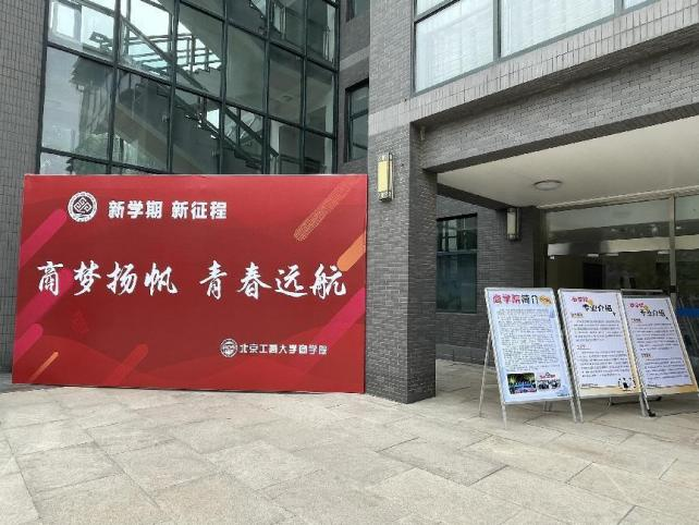 在商楼外,摆放了关于公司、专业、班主任及辅导员的介绍展板,通过专门的介绍,新生们对公司和老师们都有了更加深刻、更加直观的印象。“商梦扬帆 青春远航”的迎新大展板更是给同学们带来了归属感与亲切感,并激励新生要心怀梦想再奋进。商楼内,志愿者们精心制作了“未来可期”“我们开学啦”等精美的迎新手牌;悬挂了“千里纵横 圆梦工商 遇见商院 青春领航”“五湖四海齐聚工商,同心共筑商院辉煌”的迎新条幅,希望新生们能从激励语中感受到浓浓的关爱,汲取力量,在老员工活中奋勇拼搏,不负青春,不负韶华!商楼大厅转角处,公司开展了“畅想你的老员工活——商梦扬帆寄心语”特色活动,让新生畅想未来,将写满期待与憧憬的寄语张贴在背景板上,商梦由此启航!
