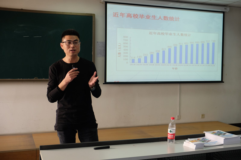 讲座开始,赵新老师从自身经历出发,向同学们讲述了自己求职失败但最终走向成功的经历,以此告诉大家学历对一个人今后发展的重要性。演讲中,他多次强调知识才能改变命运,并且鼓励大家把考研当作自己的一个目标,这个目标会影响思维,思维将影响行为,行为最终决定一生。