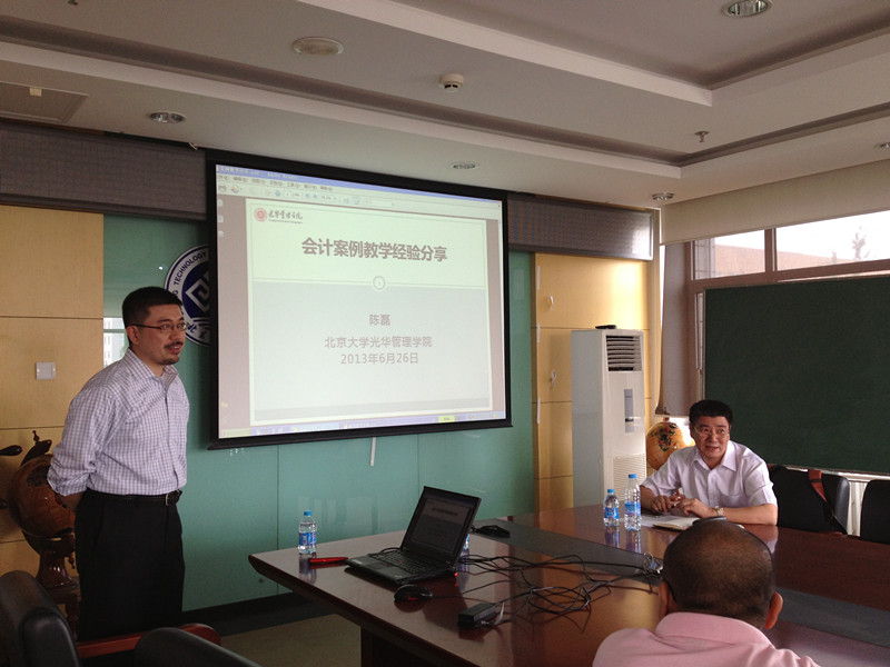 6月25日下午,公司财务系邀请北京大学光华管理公司陈磊教授就案例教学在会计类课程课堂教学中的运用进行教学经验分享,会议由王斌教授主持,财务系和会计系全体教师参加。